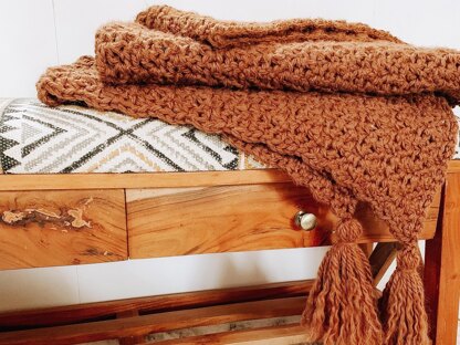The Spiced Cider Throw Blanket is a little bit of autumn and a little bit of the holiday season, but hopefully it can bring a bit of warmth and joy any month of the year. Made with Lion Brand's Re-Spun Thick & Quick, this beginner-level throw blanket pattern is deliciously warm & chunky but features a structured and sturdy lacy design.
