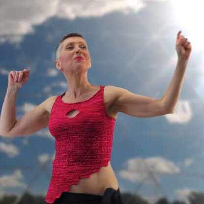 I confess that I’m not a manga connoisseur, but my nephew -who is an avid manga reader- lent me some episode of the saga and I met a very interesting character: Spice Girl/Spicy Lady, the “Stand” (a personification of “life energy” of the owner) of Trish Una, who has the incredible power of softening everything she touches. So I decided to design a tank top inspired to this powerful lady whose power I’d love to have!