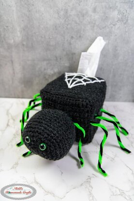 This unique and hilarious Spider Tissue Box Cover is made using mostly Single Crochet Stitches, also has pipe cleaners as legs and the tissues are pulled out of the back as spiderwebs.