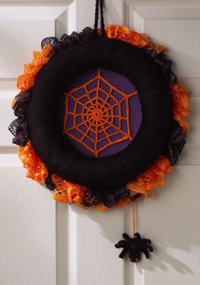 Spiderweb Halloween Wreath in Red Heart Super Saver Economy Solids - LW3748