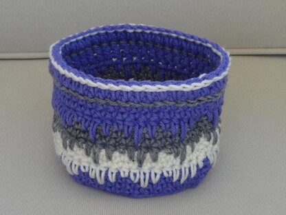 3 colors Red Heart Super Saver per basket. 1 skein each of 3 colors will make several baskets. Colorways (group photo) :