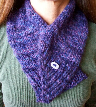 Collar Scarf A fast, soft, buttoned scarf with ribbing edges and a diagonal pattern. Knit flat. Perfect for closing in the collar area of a jacket or coat.