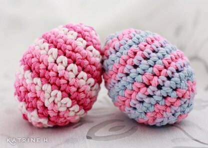 Pattern for a cute crochet Easter egg. The pattern is worked in a continuous spiral using three colors. Crocheting in the round naturally creates a round sphere, and when you work with three colors, the spiraling stitches form a beautiful swirl pattern. Updated detailed pattern with clear instructions and video links. US crochet terms used throughout.