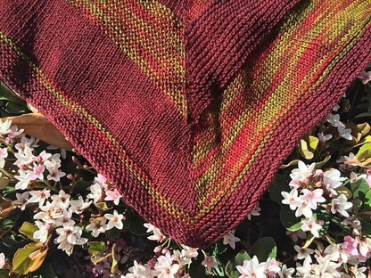 A very easy shawl to knit for those cold winter nights. With two colors of yarn you alternate stockinette and garter stitch bands, splitting each band into two colors.