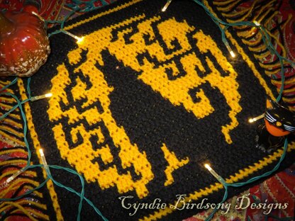 You will need 2 colors of yarn - one for the background/silhouettes and one for the moon. You will need approximately 2 oz of each color for a worsted or aran (wt 4) type of yarn.