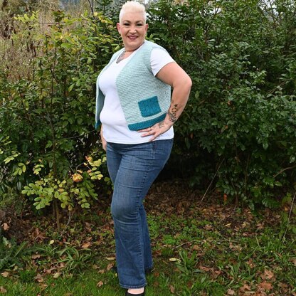 Perfect for transitioning to Spring, the Spring Blooms Vest will add the perfect touch to your Spring wardrobe. It can be styled in many different ways to add a handmade touch to your Springwear! Beautiful honeycomb stitches complement the simplicity of the Tunisian simple stitch and create a beautiful texture. The basketweave pockets add an interesting and functional dimension to the piece. This vest is worked up in panels from bottom up.