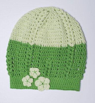 Sample hat on photo is made from 100% cotton yarn as a spring accessory, but any wool or wool blend yarn would produce a very warm hat for the winter too.