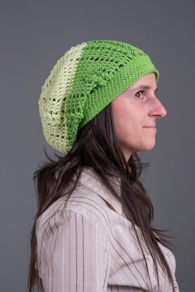 Color-block slouchy hat for cool spring weather with a pattern reminding me of budding spring branches.