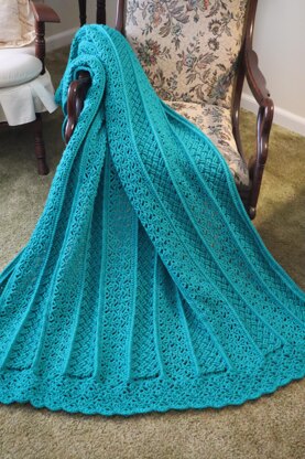 Come enjoy elegant simplicity while crocheting this spring throw in the mile a minute style! This throw features the Celtic Weave and the Crow's Feet lace in panels that will crochet up quickly and beautifully, trimmed in matching lace. A complete instructional video is included (for both right and left-handers).
