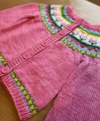 A cute top down spring tulip flower cardigan for ages from birth to approx 6 years.