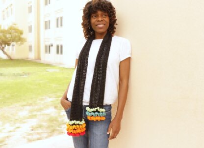 This scarf is made from leftover yarns. So, take another look at your yarn closet, dig deep and bring out those leftovers, mix and match colours to create this cheerful scarf.