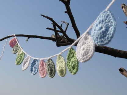 DIY pdf pattern for crochet garland spring Easter eggs party decoration pastel colors hand made crochet with acrylic yarn Very easy to follow pattern with pictures. There is one 9 page PDF with pictures for ease of understanding. The pattern uses size 2 (sports weight) acrylic yarn with 4 mm crochet hook.