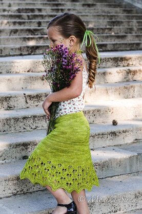 The pattern is suitable for fingering, sport or DK weight merino yarn. By choosing a fingering weight, your skirt will be light and airy. By choosing a DK weight yarn, this skirt will be perfect for colder months. Sample shown (Size 4T) in Madelinetosh Tosh Sport. A substitute yarn is shown below.