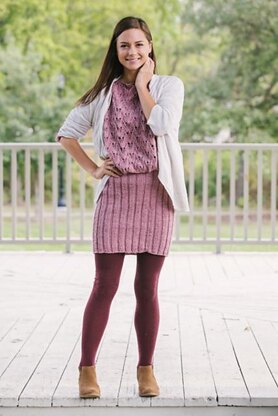 In February, there’s still a bit of chill to the winter air, but spirits are improving and there’s hope of the weather warming. This dress will carry you through to the next season. Knit in the round from the bottom up, the bottom half of the dress is fitted and ribbed for an ultra flattering look. At the waist, the draping effect begins with an expanded batwing sleeve and lace reminiscent of hearts.