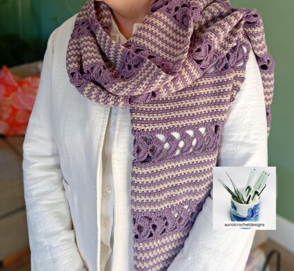 To make the wrap I use a double knit bamboo and cotton mixed yarn which has a soft sheen and a gentle drape. The wrap is a generous length to allow you to be creative how you wear it. I know you will love making this very pretty wrap and I hope will enjoy wearing it even more!