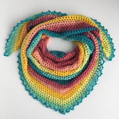 A good-size scarf using two complete cakes of Lion Brand Mandala yarn but could be made to any size desired. Make it even larger for a shawl!