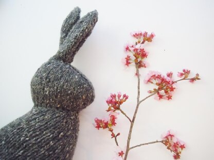 Spring Rabbit is knit in the round, so it's mostly seamless. 12 inches tall from paws to tip of ears, and 6 inches wide.