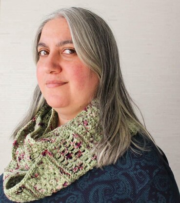 Experiment with simple, openwork stitch combinations in this beginner-friendly infinity scarf. In Miss Babs Yowza! Whatta Skein!, this is a one-skein project.