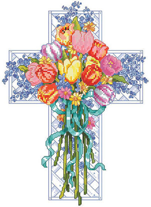 Designed by: Linda Gillum. Celebrate spring and rebirth with this Easter inspired pious floral cross. Blooming with lush tulips and graceful lilacs on a lattice cross, this floral cross adds a refreshing accent to any home. Makes a perfect indoor garden and home dГ©cor gift. Goes great with our Summer, Fall and Winter Season Floral Crosses.\n
