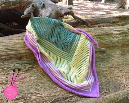 This pretty triangle shawl is light and airy without being too feminine. It is a fun project to try out different color combinations. The pattern repeat is easy to remember, making for a great TV or take-along project. You’ll need three colors. Color A: 110yd (100m), Color B: 310yd (284m), Color C: 210yd (192m)