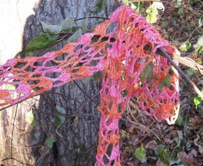 This is a beautiful summer weight scarf, that’s fast & easy to crochet, and looks wonderful in a self striping yarn! The yarn used for this scarf is a beautiful two color, self-striping yarn with merino & a pinch of bamboo for some shine. Be sure to block the scarf after crocheting, to really make the lace pattern pop!
