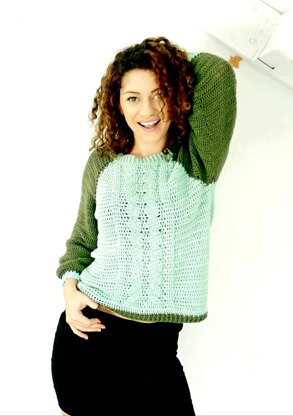 This Sweater is a top down sweater. Is worked with 2 different colors. It is worked with both colors in the same time only on the yoke part.