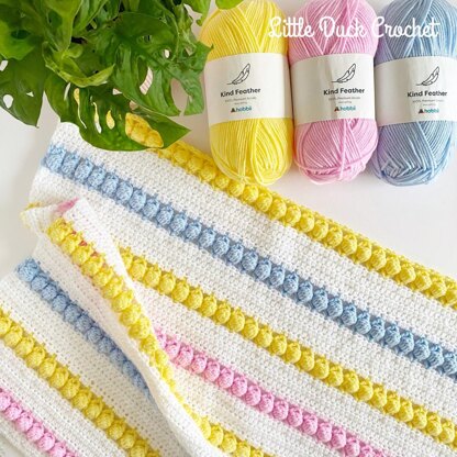 A beautifully bobbly blanket featuring bobble and v-stitches, making it lightweight and perfect for spring!