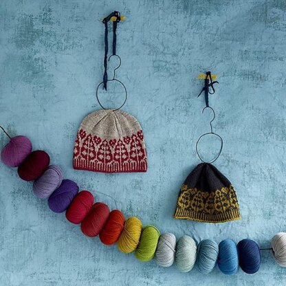 This is a beautiful hat knit in Semilla Dk, a soft organic wool yarn from bc garn available in loads of wonderful colours. Just one ball of each colour will be enough for any of the three sizes, to fit a child through to an adult. It’s also a great knit for any gender.