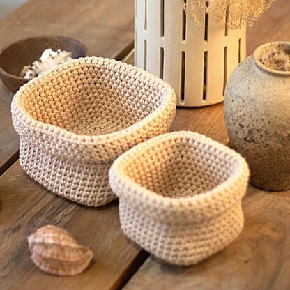 3-4 mm cotton, acrylic or polyester cord 200 meters for 2 baskets hook 4mm or 5 mm stitch markers, yarn needle