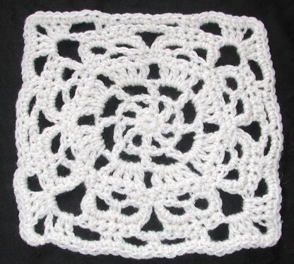 Made with aran weight yarn and a 5.50mm needle the square measures about 8 inches....a spiderweb circle design with creepy skulls is transformed into a square. Pictures of every round. American crochet terminology