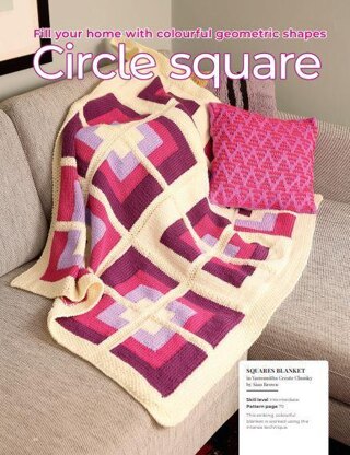 his is a pattern for a squares blanket, originally published in Knitting magazine. It is worked in intarsia in one piece with moss stitch separating the squares and moss stitch edges. You will need: 2 x 100 gm balls main and two of the other colours and 1 x 100 gm ball of the third contrast colour. Photos Knitting magazine.
