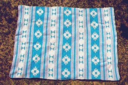The Pueblo Indians were great farmers and Squash was a very important food supply. The squash blossom design is mostly found in jewelry (necklaces). This jewelry was always done in silver and turquoise, this is a depiction that will work beautifully as a bedspread.