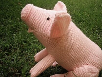 Knit in the round. Finished size is about 13 inches long from tail to snout, and 8 inches tall from floor to top of his head.