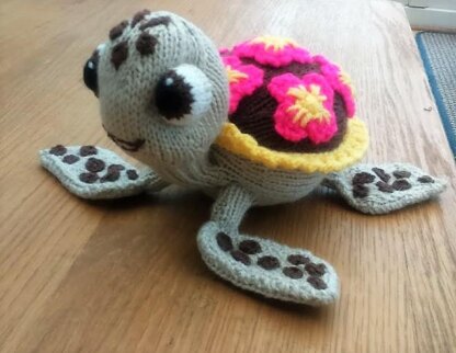 Squirt the Turtle is knitted flat and then seamed. A step by step instruction is given for each piece and there’s a section at the end to show you how to put them all together.
