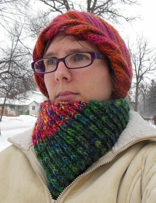 A delightfully squishy, warm, reversible cowl that can be knit up in your favourite bulky yarn. Use one colour, or stripe it with two or more. A great way to use up those bulky ends.
