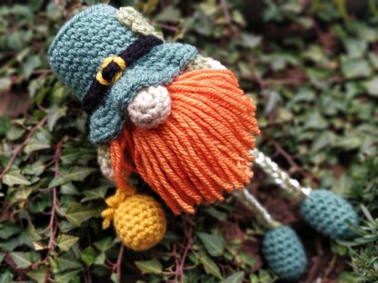 This little St. Patrick´s Gnomes has a total length of about 14 cm (24 cm with legs) (using Aran yarn). So easy and so fun to make! The pattern is written in English (US) using US terminology.