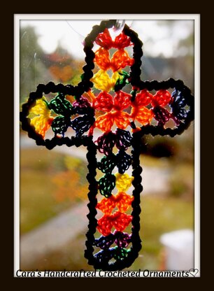 These stained glass crosses are spectacular when worked in variegated thread, then edged in a complementing color, starched stiffly, and hung in a window to catch the sun. My pattern also includes my favorite starching method and instructions.