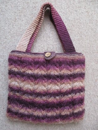 This is a pattern for a Staircase Cable Bag, originally published in Knitting magazine. It has a repeating cable, and is lined with fabric and wadding, and finished with a press stud fastening.