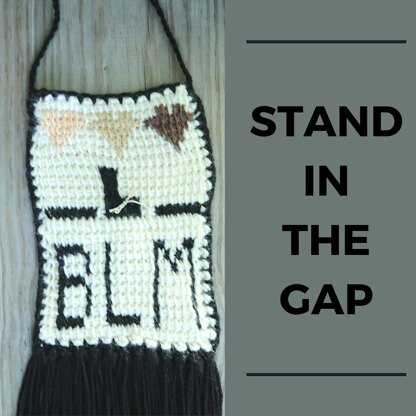 This pattern is for a statement Tunisian crochet square in honor of the Black Lives Matter Movement and a reminder to always stand in the gap! It’s The perfect square to practice Tunisian crochet colorwork and to stand up for an important cause. It can be used as a piece of decor by hanging it on the wall or turned into a purse by crocheting a plain square for the back and sewing the squares together!
