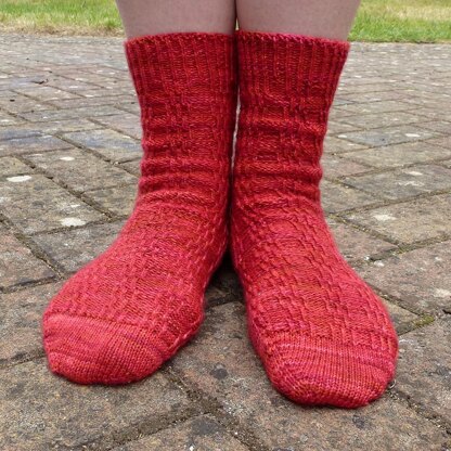 These toe-up socks feature a simple pattern of twisted stitches, along with a reverse stocking stitch gusset and an Eye of Partridge heel flap. The pattern is written with instructions for Magic Loop but there is no reason why you shouldn't knit with another style of needle if that is your preference.
