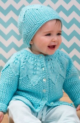 Star Bright Baby Cardigan and Hat in Red Heart Soft Baby Steps Solids - LW3596