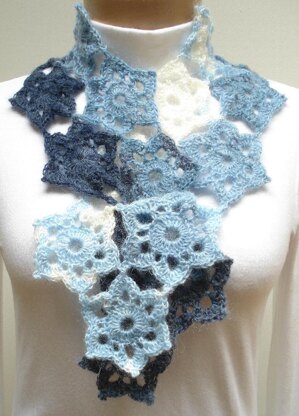 Just twenty-one motifs (but more can be added for a longer scarf) that are joined as you work into two rows create this exquisite little winter accessory.
