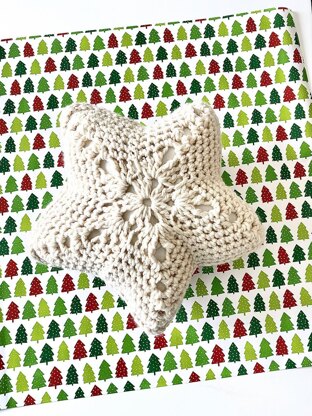 A cute star pillow is perfect for decorating for the holidays or even in a nursery year round. Crocheted with chunky yarn, this pillow works up quickly and you will have a cute pillow to decorate the room.
