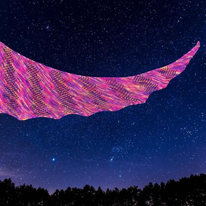 The Stargazer shawl embodies the spirit of a shooting star. A simple mesh of eyelets form zigzags which streak across the shawl. The solid bands of stockinette show off the nuances of the colorway you’ve chosen, like the night sky once your eyes adjust to the dark. The simple stitch patterns allow highly variegated yarns to shine. And just like a shooting star, this asymmetrical, one-skein shawl will be done in a flash!