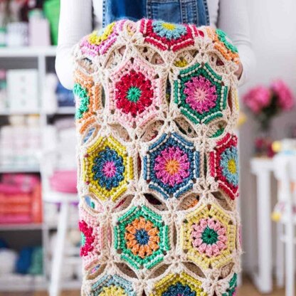 The blanket in the picture is made from Scheepjes Stonewashed XL but Yarn and Color Super Charming would make a fanastic alternative. The colours have been listed here on LoveCrochet.