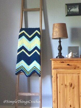 The Starry Night Baby Blanket combines a unique blend of colors and a beautiful chevron stitch that will add a touch a style to your baby’s room. Plus, it’s super-soft making it just the thing to cozy up to your precious little one. On top of that, it’s done in Basic Stitch Anti-Pilling yarn from Lion Brand which makes it perfect for repeated washings. This sweet blanket will stand up to a lot of wear and tear - and love! The blanket measures 33" x 33", and though I designed it as a baby blanket, I think it would make a great lap blanket or throw. You will need 3 skeins of Lion Brand Basic Stitch Anti-Pilling yarn in Steel Blue, 2 skeins in Frost, and 1 skein in Lemonade.