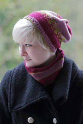 Bundled mini skeins are paired up to create either a Fair Isle hat or a beginners striped cowl. Each project uses 3 mini skeins with leftovers in the contrasting color. Fair Isle hat can also be solely striped for those intimidated by Fair Isle. Pattern also includes several variations.