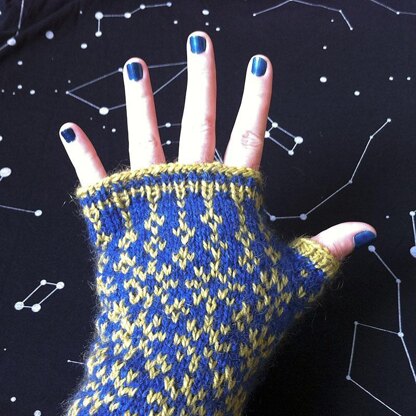 A starry pair of stranded mitts, named in honour of the astronomer and populariser of science, Carl Sagan.