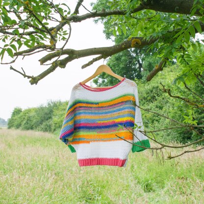 Materials & Sizing: The item you see used a mixture of brands of DK cotton (mostly Paintbox) yarn but the project would also work with other fibres or a mix of both to add texture. The finished sweater is oversized.