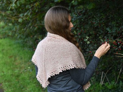 Statice shawl is knitted top down in combination of garter stitch with row of simple eyelets. The bottom edge of shawl is decorated with picot bind off. The size of shawl is easily adjustable to small shawlette or larger shawl by adding or removing number of rows in garter stitch.